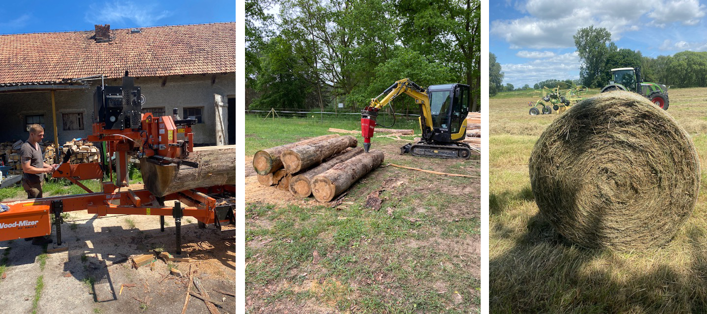 Mobiles Sägewerk...                            Holz spalten...                                     Heu liefern...